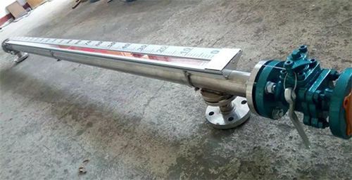 3、磁翻板液位計(jì)安裝必須垂直,磁翻板液位計(jì)與容器引管間應(yīng)裝有球閥,便于檢修和清洗;