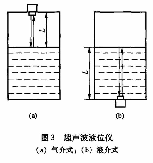 超聲波液位儀(見圖3)工作原理是由超聲波換能器(探頭)發(fā)出高頻脈沖聲波,遇到被測物位(物料)表面被反射折回,反射回波被換能器接收轉(zhuǎn)換成電信號。