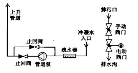 5.1如上圖所示,在原上升管道與疏水器之間增加兩條回路,其中主路由止回閥、管道泵組成。管道泵與換熱器的三暢磁翻板液位計(jì)連鎖,根據(jù)現(xiàn)場具體運(yùn)行情況設(shè)置高、低液位管道泵自動啟停,磁翻板液位計(jì)的數(shù)值上傳至廠區(qū)指揮中心,實(shí)時(shí)遠(yuǎn)程監(jiān)控,同時(shí)增設(shè)管道泵的緊急停止按鈕。旁路僅設(shè)置止回閥。在正常情況下,凝結(jié)水可以通過旁路的止回閥順利地回收到凝結(jié)水回收裝置中;在非正常情況下,則可以憑借管道泵加壓后,順利回收。