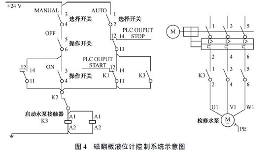 在檢修排水系統中, 采用丙酸液位計來代替壓力變送器, 在實際水位的觀察上直觀清晰, 由于指示部分與被測介質完全隔離, 其機構密封結合面少,不易滲漏, 運行安全可靠, 該裝置易于安裝、維修也方便, 工作時不受環境溫、濕度的影響。利用液位計管壁外側的磁記憶開關, 做到自動控制檢修水泵啟停功能后, 增加了檢修水泵設備的運行安全性和可靠性, 同時對運行人員能夠準確地判斷尾水管水位,提供了依據。通過此次的技改, 使我們認識到面對缺陷要利用科學的方法去分析, 用合理的辦法去解決, 確保電站設備的安全可靠運行。