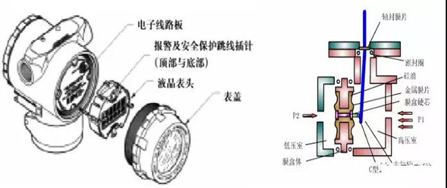 鍋爐差壓式液位計結構:主要部件為傳感器模塊、電子元件外殼、毛細管、高低壓側法蘭及膜片。傳感器模塊包括充油傳感器系統(隔離膜、充油系統和傳感器)以及傳感器電子元件。