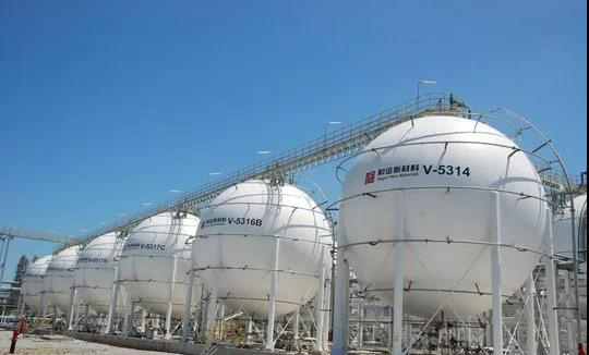 球罐,抗壓性好,與圓筒容器(即一般立式貯罐)相比,在直徑和壓力相同的情況下,罐壁厚度僅為圓筒容器的一半,鋼材用量??;量程大,且占地較小,基礎(chǔ)工程簡單,性價比高,為*常用儲罐之一。