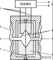 1.導(dǎo)線;2.隔離膜片;3,充灌液;4.固定電*; 5.測量膜片;6.剛性絕緣體(陶瓷);7.浮動膜片圖