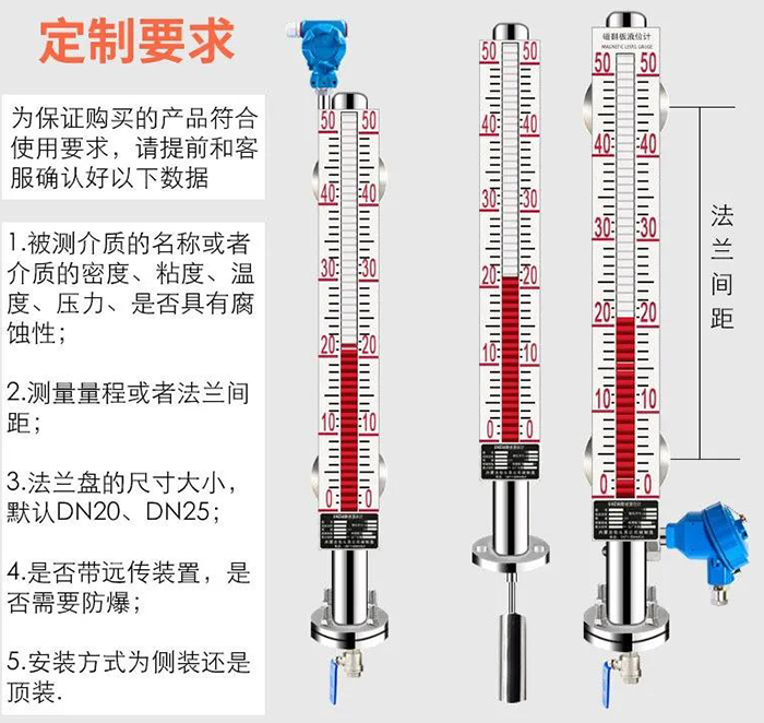 選擇磁性液位計(jì)時(shí),知道要測(cè)量的介質(zhì)及為關(guān)鍵,像低溫,高溫,腐蝕都是磁翻板致命的因素,如果不清楚介質(zhì)就隨意選用,不僅會(huì)對(duì)測(cè)量精度有所誤差,也會(huì)直接影響磁性液位計(jì)的使用壽命;又或者是直接無法使用工況的測(cè)量。