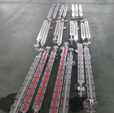 磁翻板液位計(也可稱為磁性浮子液位計)根據浮力原理和磁性耦合作用研制而成。當被測容器中的液位升降時,液位計本體管中的磁性浮子也隨之升降,浮子內的永久磁鋼通過磁耦合傳遞到磁翻柱指示器,驅動紅、白翻柱翻轉180°,當液位上升時翻柱由白色轉變為紅色,當液位下降時翻柱由紅色轉變為白色,指示器的紅白交界處為容器內部液位的實際高度,從而實現液位清晰的指示。