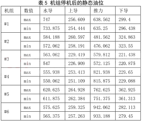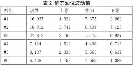 表 1 機組檢修后的靜態油位(以下油位單位均為:mm)